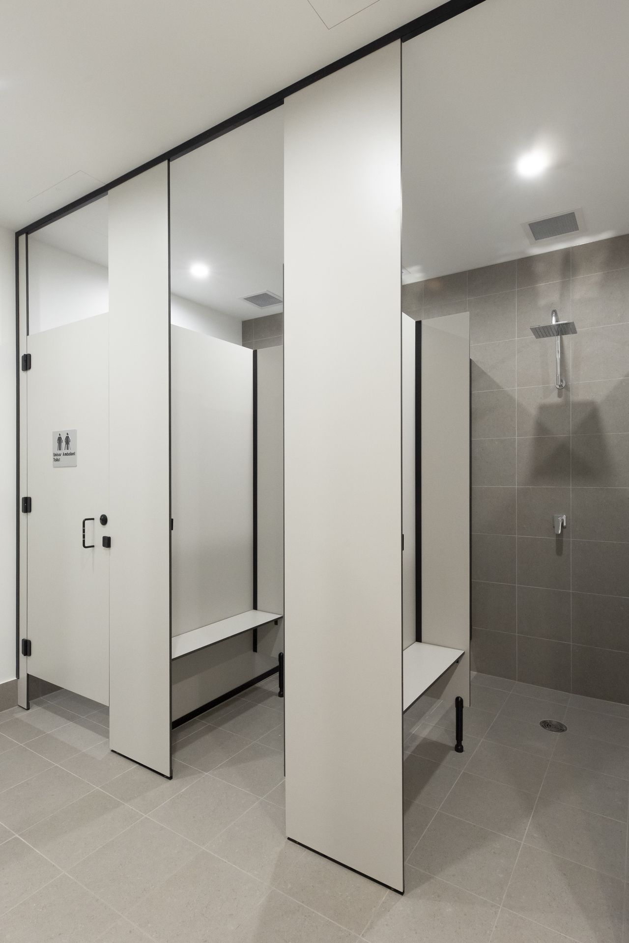 To enhance privacy and user comfort, our Full-height Privacy Core partitions in DuraSafe 275 Classic Grey were used across the changerooms and shower areas, delivering durability, inclusivity, and a welcoming sense of safety suitable for a community-focused environment.